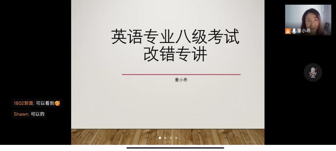 针对学生的复习需求,于2022年5月26日至2022年6月23日举办了8场专八专题辅导讲座,分别从听力、翻译、写作、改错等方面为大家带来一些专八考试“干货”。