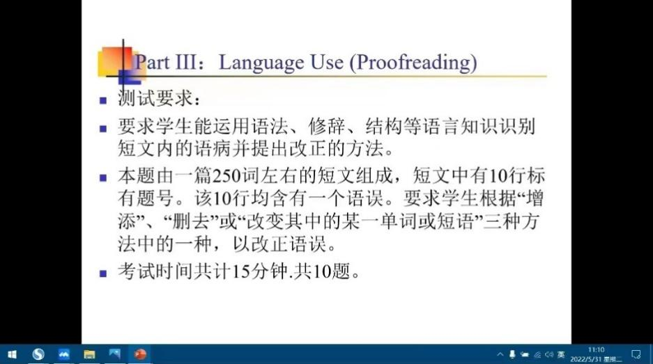 5月31日,刘敏老师进行了英语专业八级考试的辅导讲座。刘老师首先综述了专八考试的总体题型,分为听力部分、阅读理解部分、语言知识部分、翻译部分以及写作部分。接着,刘老师仔细讲解了各部分题型的考法、考点,并贴心地为同学们列出了每部分题型的评分原则和易错点,给出了对应的答题技巧,非常实用。在语言知识部分题型中,刘老师细致地列出了高频易混词集粹,分为形近异义、形近义近、各类词组等类。讲座最后,刘老师带领同学们做了两套改错题,并进行了解答。
