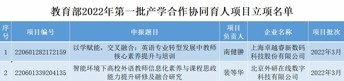 近日,教育部高教司发布了《教育部高等教育司关于公布2022年第一批产学合作协同育人项目立项名单的通知》,英文开云体育 2个项目成功获批2022年第一批项目立项。