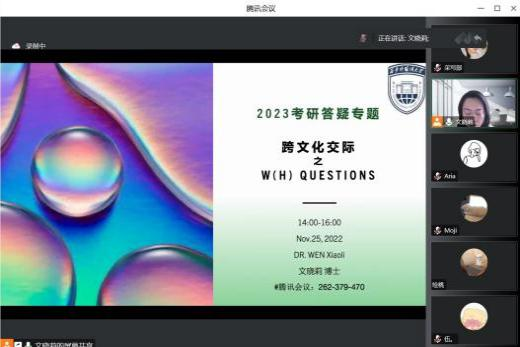 于2022年11月邀请四位老师通过腾讯会议方式,线上举办英语专业考研答疑系列讲座,为同学们答疑解惑。