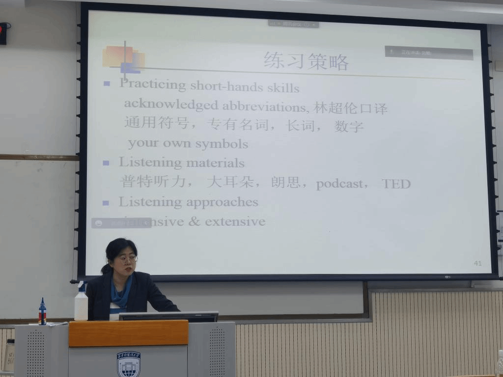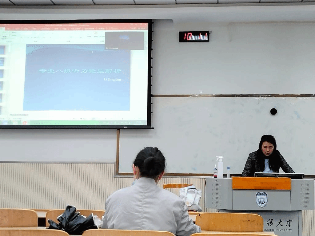3月31日,李晶晶老师进行了“专八听力实训”讲座。李老师从专四与专八的区别切入,表示专八听力语速更快且要求考生理解讲话人的态度情感,其文章内容涉及专业知识。根据最新的题型调整,专八听力由MINI-LECTURE和INTERVIEWS两部分构成。李老师首先指出考试中的讲座是类正式、仿真实的,考生要找到标志性的话语结构。李晶晶老师以2021年专八听力真题为例,总结了答题步骤和技巧,给同学们提出了练习建议并推荐了相关英语材料。最后,李老师告诉同学们,考前一定要多刷题把心态放好,不要轻易放弃,相信同学们最终都会胜利。
