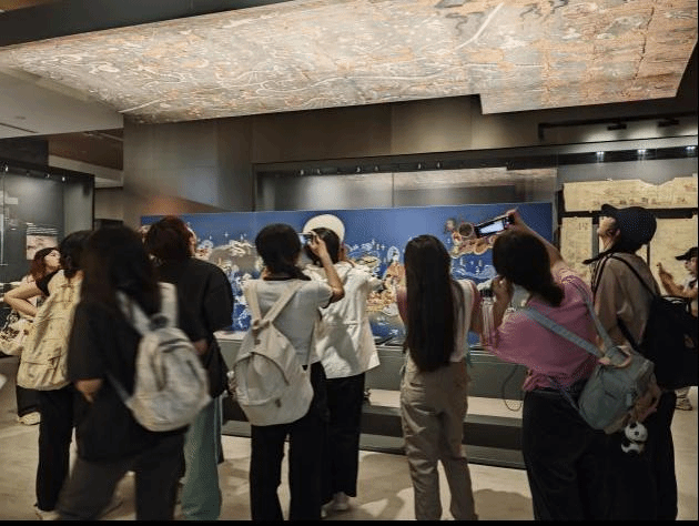 抵达博物馆之后,同学们有序排好队并分成三组,跟随讲解员的脚步依次参观各个展厅。期间,讲解员讲到了很多有趣的知识点,同学们听得津津有味,并积极热情地与老师、讲解员互动。对于不了解的地方,同学们也会在聆听完讲解员的解说之后认真做笔记,并拍照记录。在参观完几个基本展馆之后,同学们依次前往临展壁画馆进行游览学习。之后,于中午12点整在博物馆指定地点集合,老师和同学们合影留念并原路返回学校。