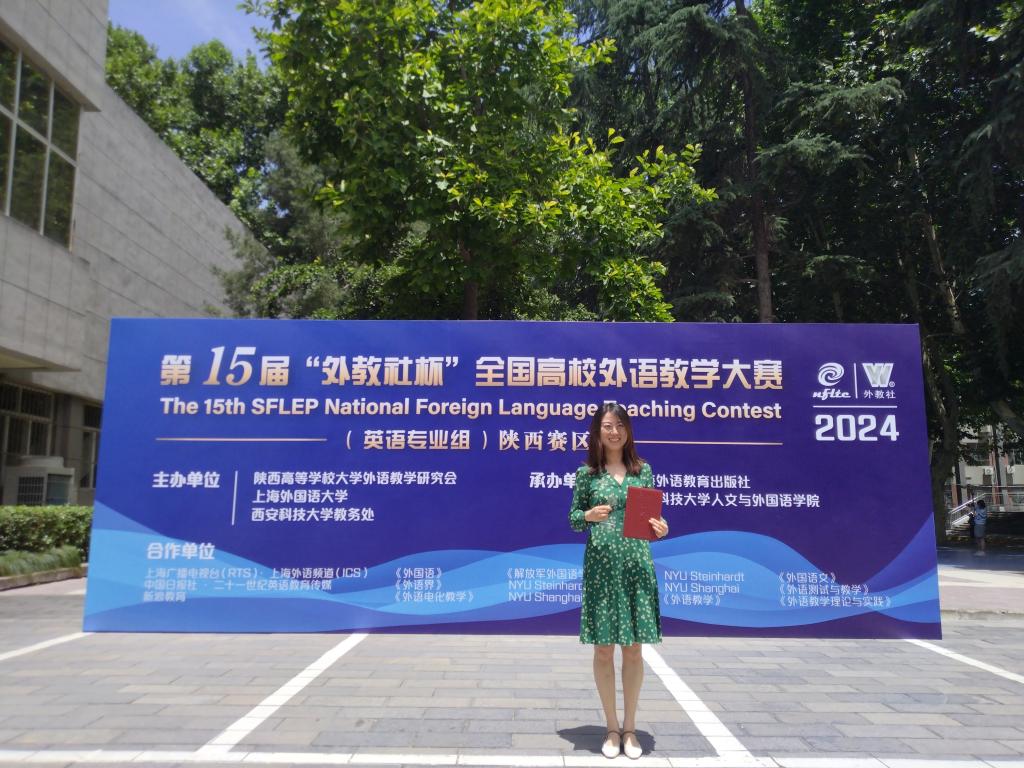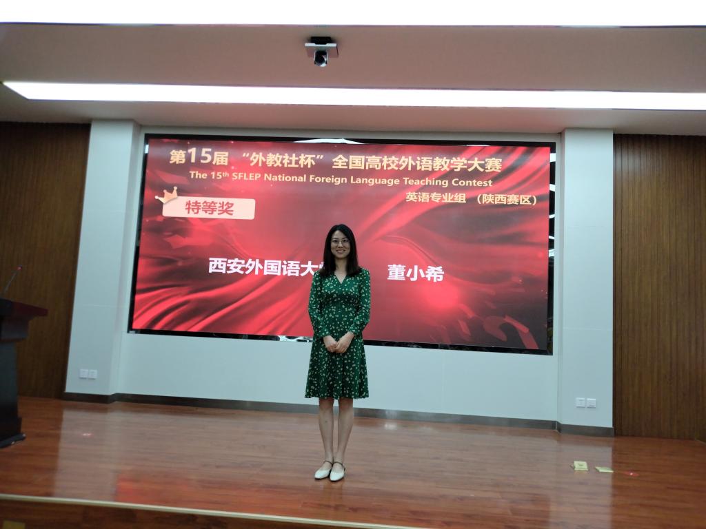 董小希老师凭借优秀的教学设计和教学展示获得陕西赛区特等奖,并将代表陕西省参加外教社11月份举办的全国总决赛。