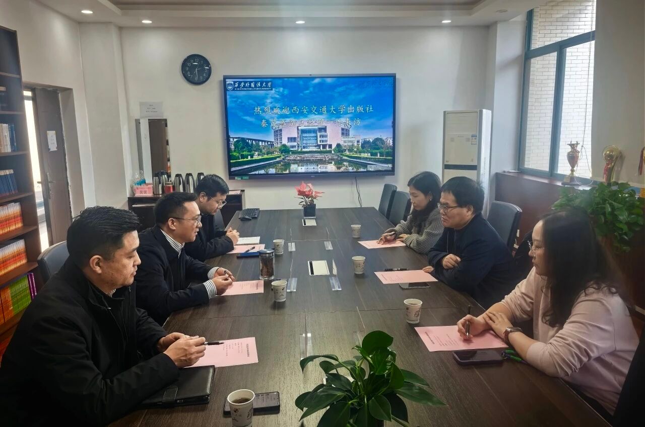 基本情况及近年来在教学科研、教材建设等方面取得的成果。他表示,西安交通大学出版社作为国内知名出版机构,在优质教材出版与学术传播领域成果丰硕,希望以此次调研为契机,搭建长效合作平台,在精品教材研发、学术著作出版、项目申报以及教学资源共建等方面深化合作,实现互利共赢。