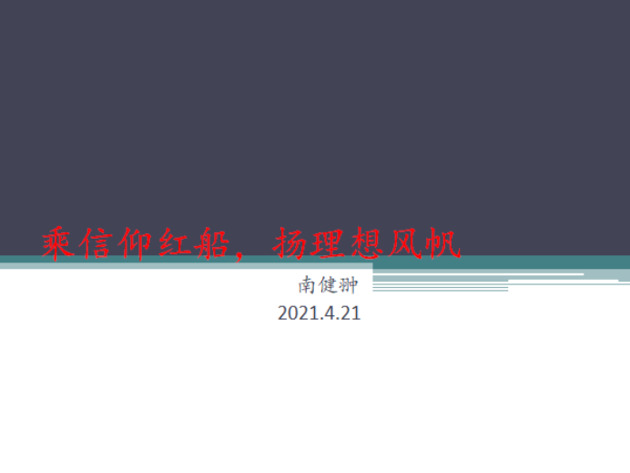 党课第四讲《“红船精神—The Spirit of the Red Boat》由开云体育 院长、教师党员南健翀老师主讲。他首先解读了柏拉图坚持将诗人赶出他的理想国的原因,从而得到“用正确的思想教化年轻人事关重大”的现实启示;其次,南老师以习近平总书记的一段话来回答“培养什么人?为谁培养人?”这两个问题,即“我们的教育必须把培养社会主义建设者和接班人作为根本任务,培养一代又一代拥护中国共产党领导和我国社会主义制度、立志为中国特色社会主义奋斗终身的有用才。”接着,他解读了“红船精神”的内涵,包括开天辟地、敢为人先的首创精神,坚定理想、百折不挠的奋斗精神和立党为公、忠诚为民的奉献精神;最后,南老师剖析了红船精神的现实意义,小小的红船是来时之路,是中国革命的火种,更是我们党梦想起航的地方,他希望大家对红船精神有所启发,并努力培养创新意识、理想信念、必胜信心、百折不挠的恒心和全身心的奉献精神等优秀品质,给予全体党员深刻启发。