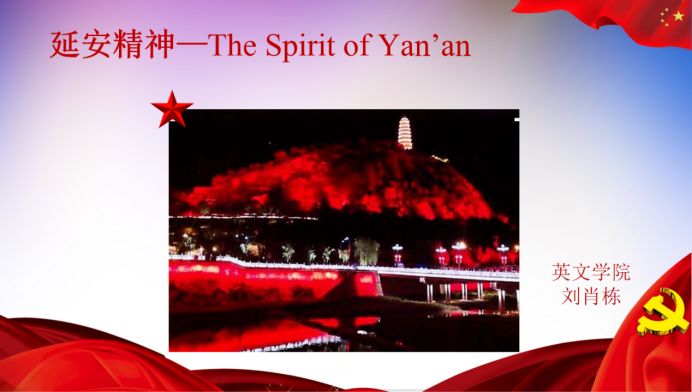党课第三讲《延安精神—The Spirit of Yan'an》由开云体育 党委委员刘肖栋老师主讲。她首先以《回延安》这首熟悉的歌谣为切入点,引入革命圣地延安,带领全体党员回顾了延安精神的历史概况;接着就斯诺之困——东方魔力之谜来展示延安精神的魅力所在;然后重点解读了延安精神的内涵,包括坚定正确的政治方向,解放思想、实事求是的思想路线,全心全意为人民服务的根本宗旨,自力更生、艰苦奋斗的创业精神;最后,她通过解析延安精神的当代价值,包括全球视野中国情怀幸福是奋斗出来”几个方面,对在座的学生党员提出要求和期许。