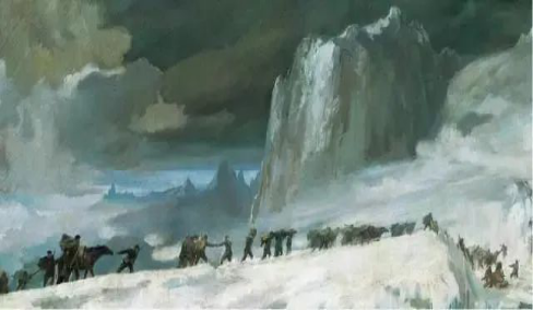 可毛泽东自己却拄着拐棍,迎着刺骨的寒风,一步一滑地向着雪山走去。