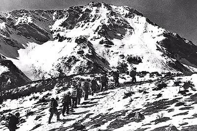 但是为了摆脱敌人的围追堵截,困难再大也必须克服。6月12日拂晓,英勇的先遣队红军战士喝了一些烈酒、姜汤、辣椒汤,沿着崎岖狭窄的泥路爬山了。他们用镐刨开雪路,为后续部队留下前进的路线。当天下午,红一军团第二师第四团终于翻过终年积雪的夹金山,到达懋功的达维镇,与红四方面军会合了。