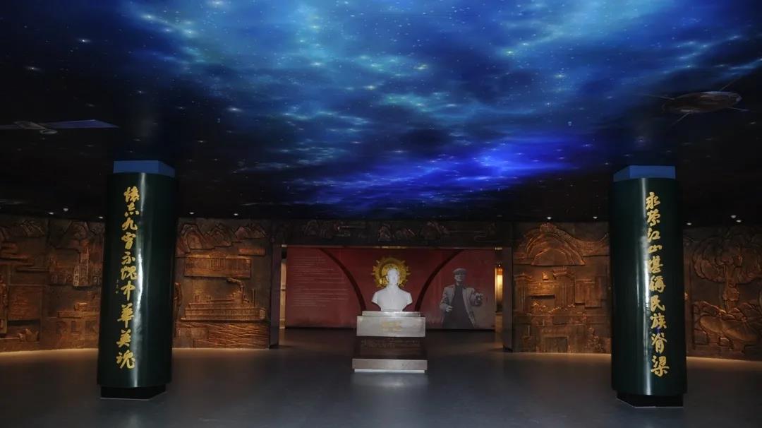 (1)序厅。这里展示了郭永怀同志的半身汉白玉雕像,以及刻有郭永怀同志一生历程的浮雕背景墙。东西两侧设有服务中心和题词、留言设施,4个电视可点播郭永怀同志纪录片、李佩先生访谈录、郭永怀同志部分学生访谈录以及中科大纪念郭永怀同志所创作的音乐剧《爱在天际》。