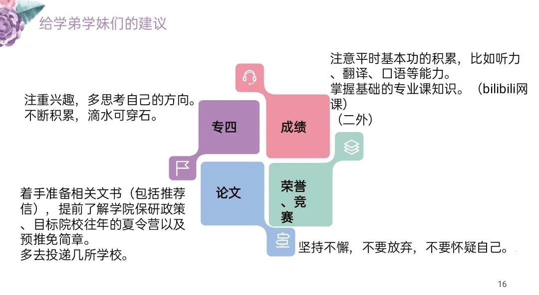 有幸邀请到保研至南京大学笔译专业的宋欣泽学姐、保研至北京航空航天大学外英语专业的徐婷婷学姐、陕西师范大学学科英语考研上岸的陈晓楠学姐和上海外国语大学口译专业考研上岸的王子瑞学姐为大家分享她们的保研和考研经验。