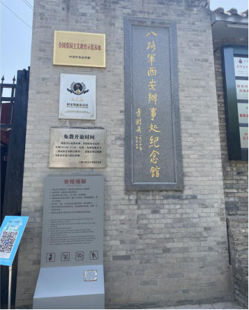 进入大门 ,讲解员在门口讲解道“这里曾是中共中央先后设立的秘密交通站、红军联络处、国民革命军第八路军驻陕办事处的所在地,周恩来、朱德、刘少奇等老一辈革命家都在这里留下了工作和奋斗的足迹。”