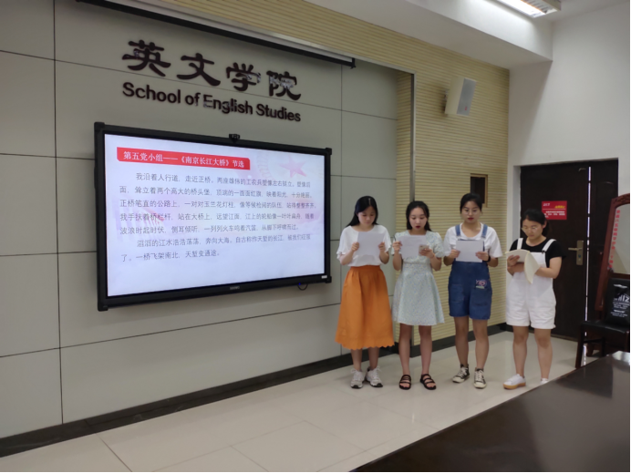 其次,廉文军同大家分享了名叫《中国智慧》的红色书籍,主要从对外开放中如何从参与者到领导者、如何从大规模减贫到精准脱贫、生态文明等方面对书中内容做了总结和分析她还深入分析到,《中国智慧》这本书为促进经济全球化健康发展和解决人类问题贡献了中国智慧和中国方案其中也蕴含着我国丰富的智慧硕果和文化精神。随后,各党小组依次朗诵了《飞越大渡河》、《大写的中国》、《南京长江大桥》、《可爱的中国》等红色经典作品他们铿锵有力且激情高昂声音下是浓烈的青春朝气和强烈的民族自豪感。