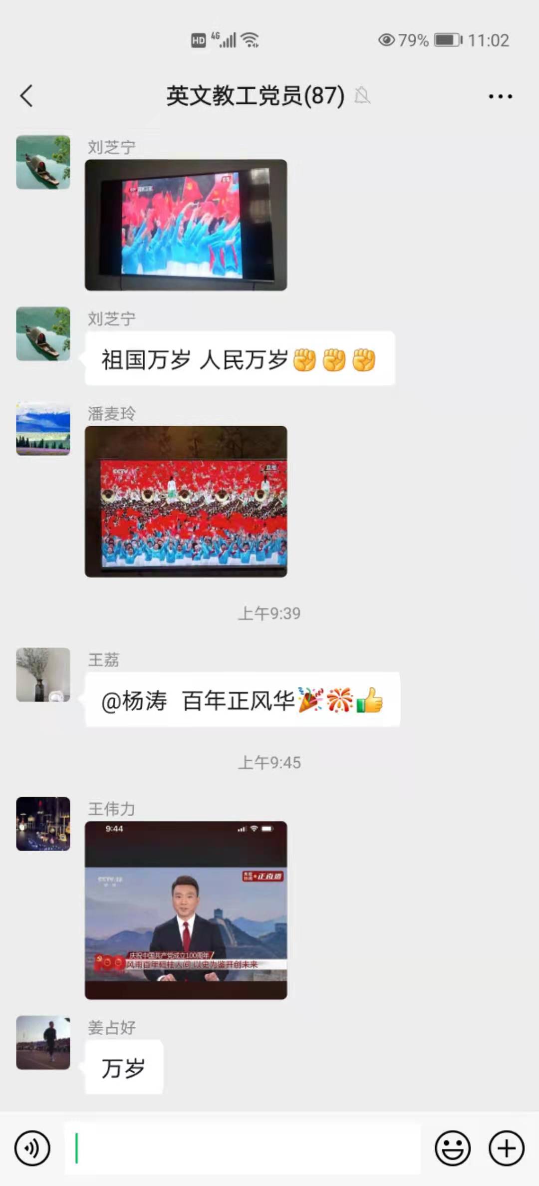 大会直播结束后,党委书记单升军带领参会人员重温了习近平总书记在庆祝中国共产党成立一百周年大会上讲话的重要内容,大家反响强烈。他谈到,庆祝中国共产党成立一百周年大会和我校组织的庆祝中国共产党成立一百周年升国旗仪式都在雨中进行,标示着中国共产党风雨兼程中百年的奋斗史;庆祝大会结束后雨过天晴,标示着中国共产党伟大光明的美好前程。他指出,习近平总书记的在讲话中首次提出的32字的伟大建党精神是百年党史留给我们的宝贵精神财富,每一个共产党员要牢记在心,积极践行。他号召全体教职工党员和学生党员迅速掀起学习习近平总书记在庆祝中国共产党成立一百周年大会上的讲话精神的热潮,将讲话精神入脑入心,以更加饱满的热情投入到工作学习中。